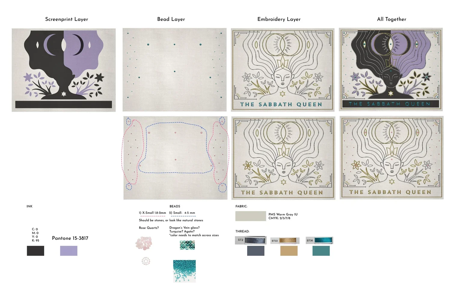 My role at Adara was a mix of illustration, design and production drawings for the embroiderers, beaders, and fabricators. For a peek into the Challah cover's creative process see below.